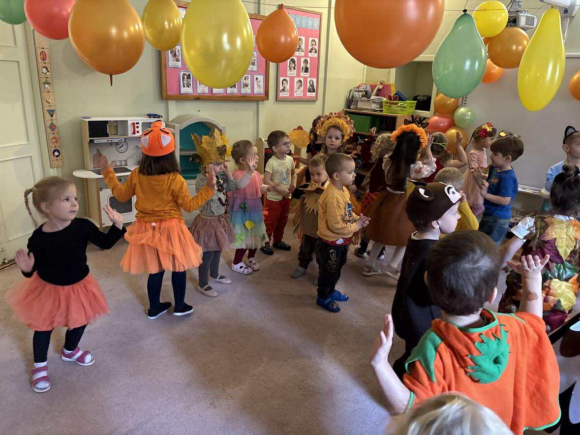 W naszym przedszkolu tradycją stało się organizowanie Balu Jesieni dla przedszkolaków. Z okazji imprezy przedszkolaki przyszły tego dnia do przedszkola ubrane w stroje i przebrania o tematyce jesiennej, które z dumą i uśmiechem na ustach prezentowały swoim rówieśnikom. Wspólnie bawiły się liski, jeżyki, sówki, jesienne wróżki. Śpiewając i tańcząc przy piosenkach o tematyce jesiennej. Jednym słowem przedszkole mieniło się wszystkimi kolorami jesieni. Oprócz tańców dzieci aktywnie uczestniczyły w różnorodnych zabawach: rozwiązywały zagadki i uczestniczyły w konkursach o jesieni. Mali, jesienni przebierańcy bawili się doskonale, czego dowodem były uśmiechy na ich twarzach.
