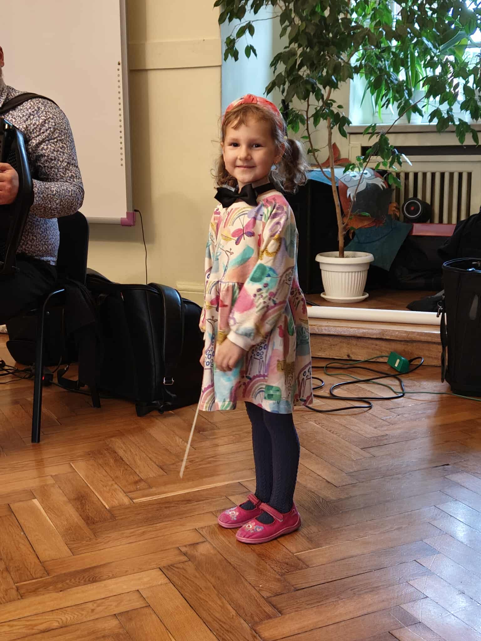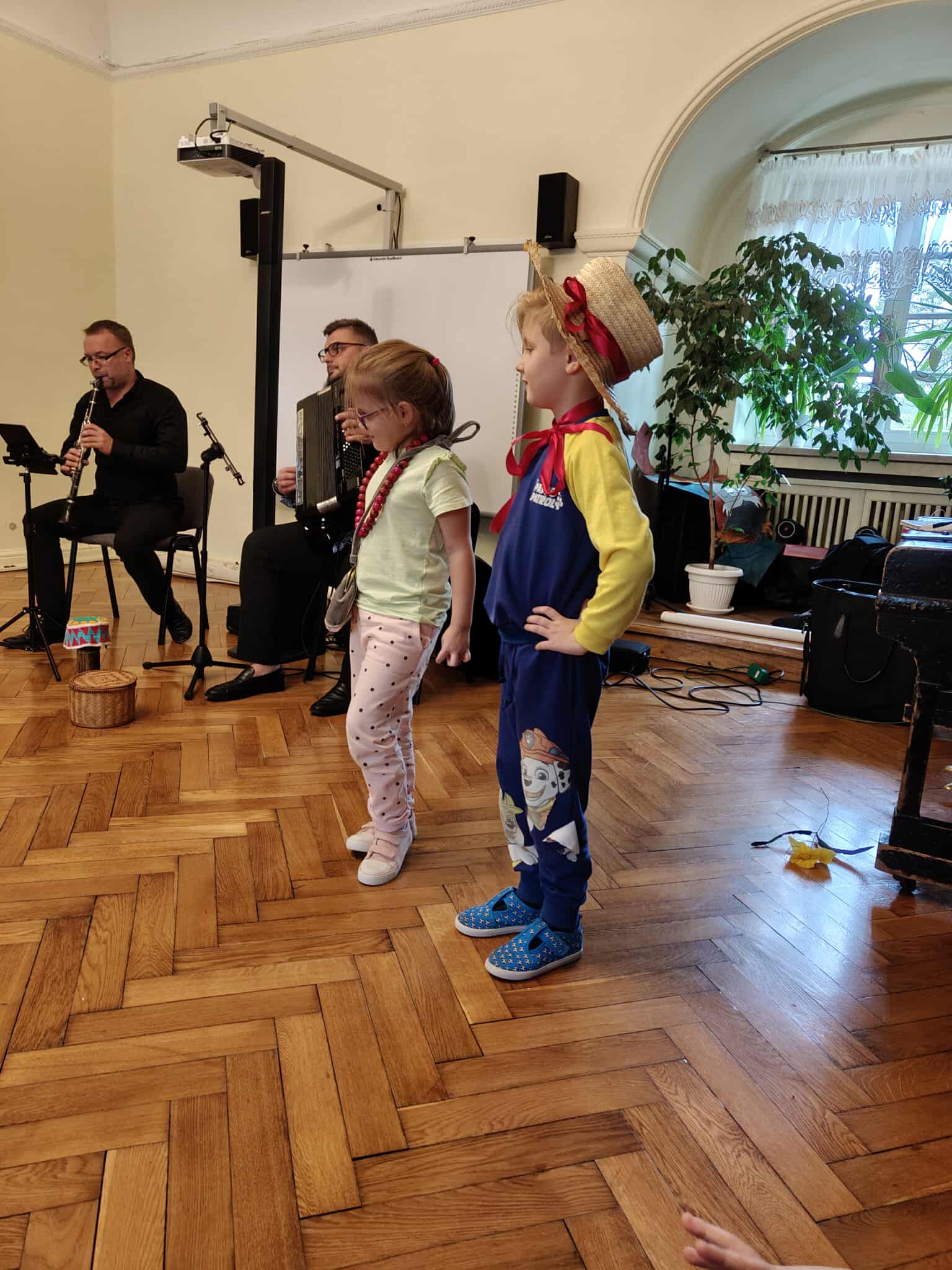Dnia 10 października odbyła się kolejna audycja muzyczna Filharmonii na kółkach pt. ,,Muzycznym tropem klarnetu". Gościem specjalnym był Pan Patrycjusz, który oczarował nas swoim talentem i pięknym brzmieniem klarnetu. Podczas spotkania poznaliśmy ten wyjątkowy instrument – jego budowę, brzmienie i możliwości. Dzieci miały okazję usłyszeć, jak klarnet potrafi opowiadać muzyczne historie: raz wesołe, raz tajemnicze, a czasem nawet zupełnie szalone. To spotkanie z Filharmonią na Kółkach było nie tylko lekcją muzyki, ale także wspaniałą zabawą, która zachęca dzieci do odkrywania świata dźwięków.