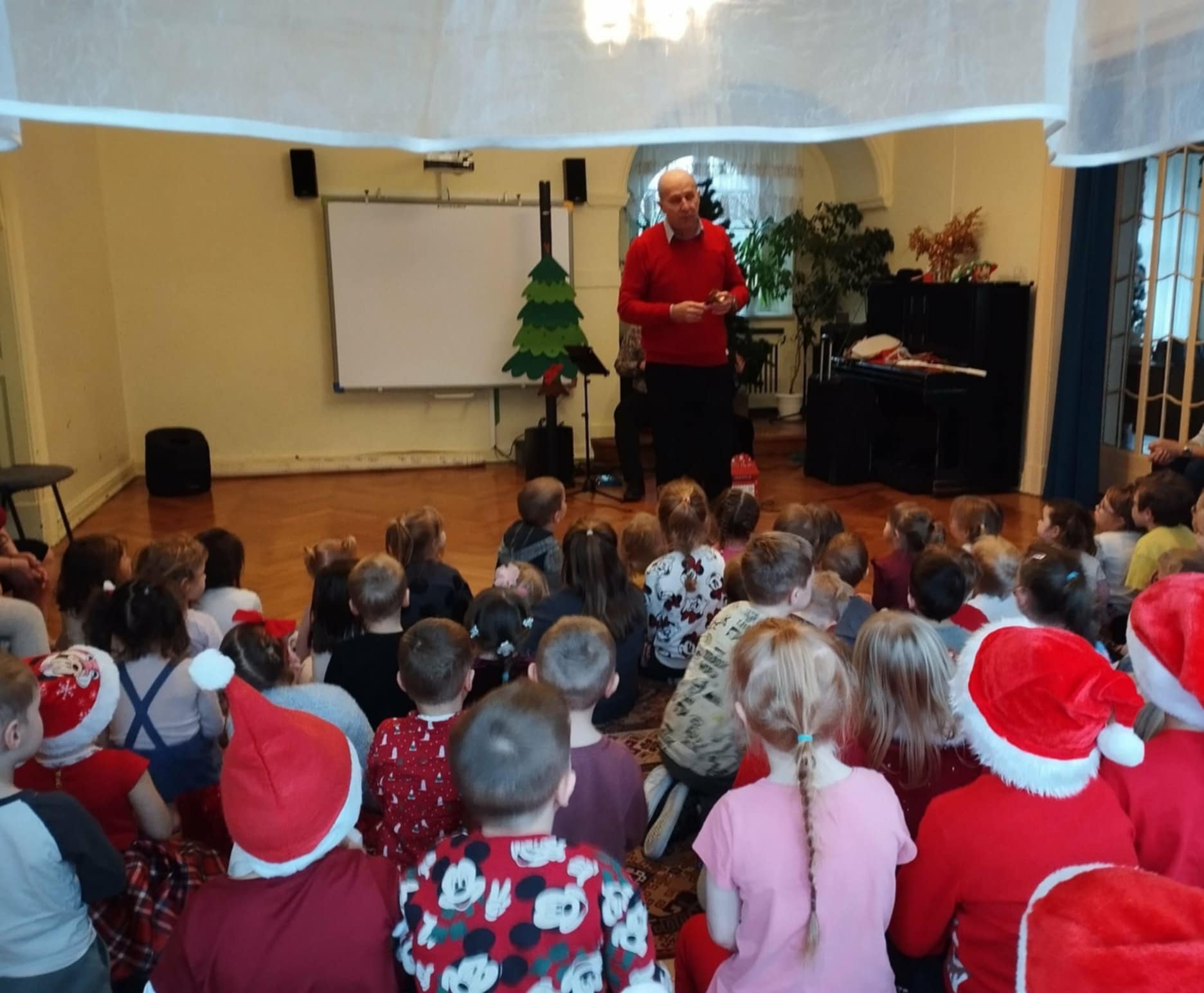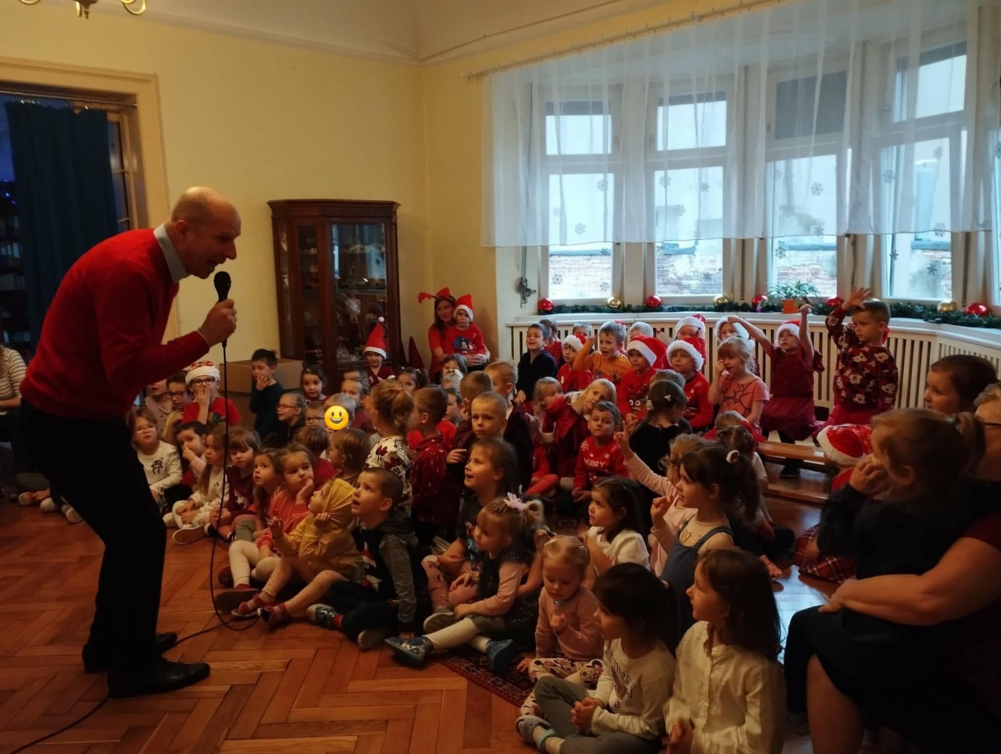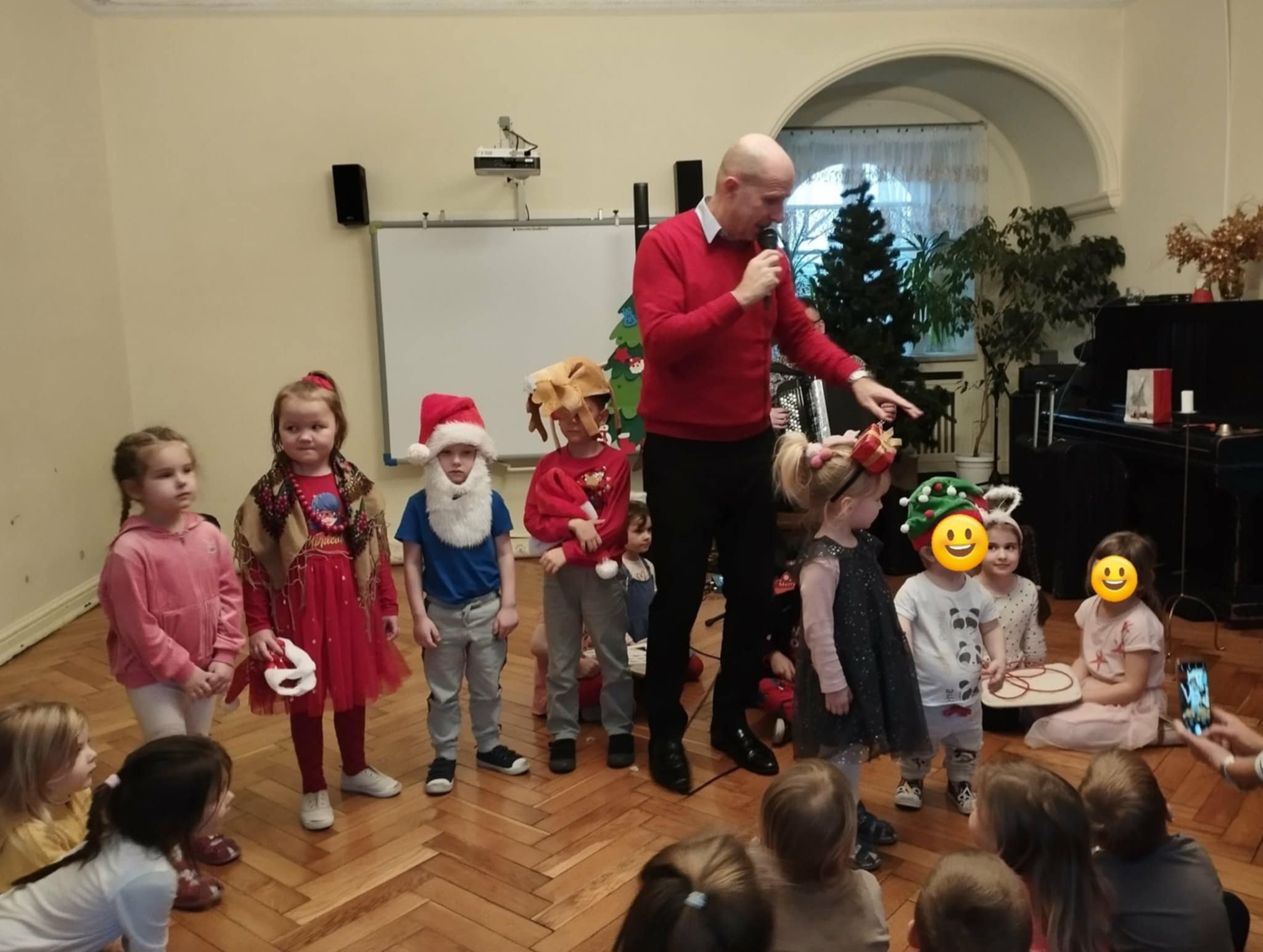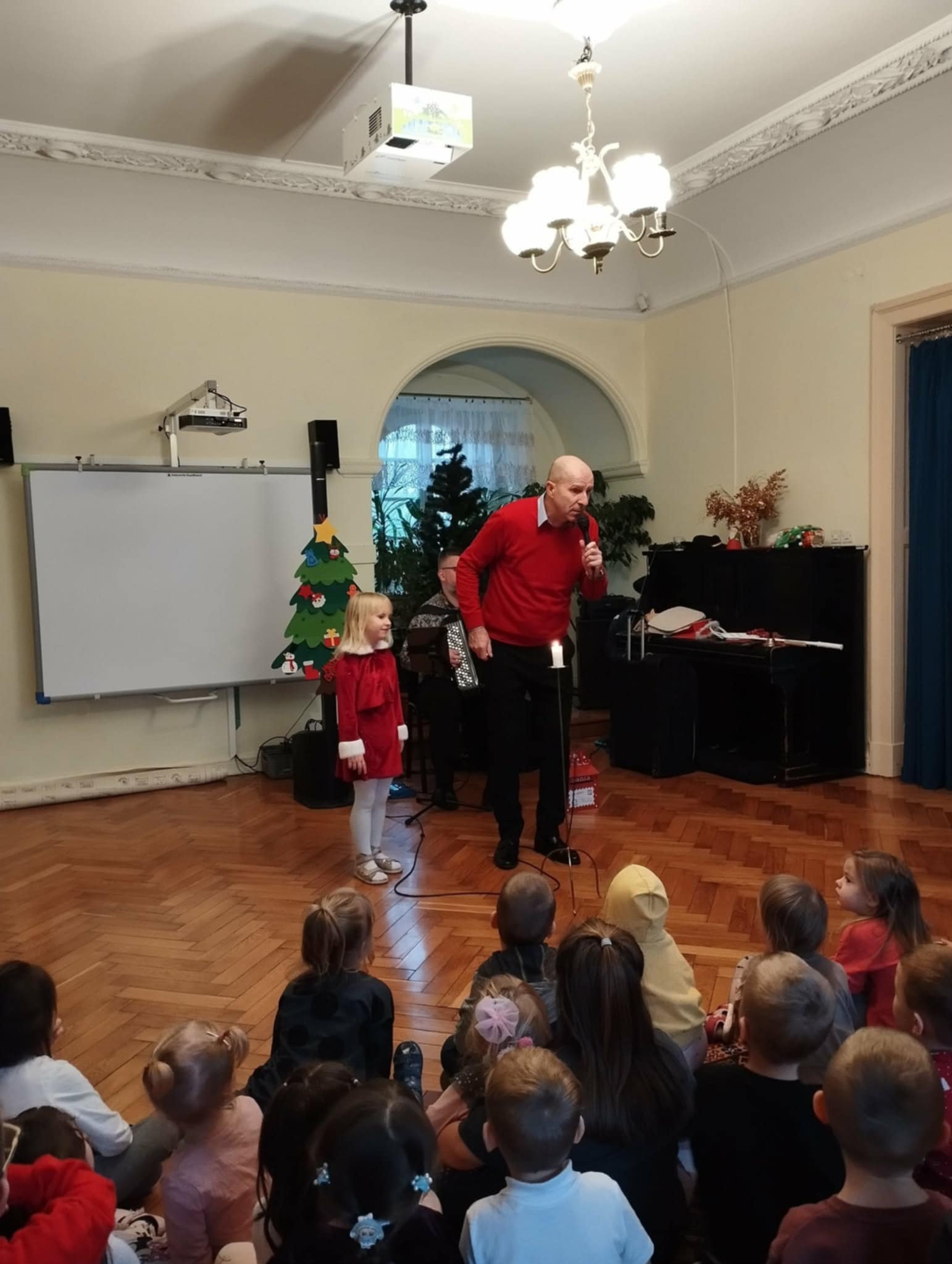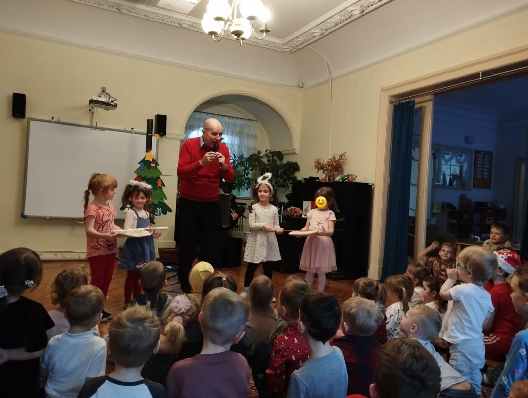 Dnia 5 grudnia odbyło się wyjątkowe, spotkanie pełne muzyki i świątecznej magii. Filharmonia na kółkach przyjechała do naszego przedszkola z koncertem "Kolędy domowe". Dzieci zrobiły świąteczne porządki wcielając się w rolę aniołków, udekorowały choinkę, a potem wspólnie zaśpiewały najpiękniejsze kolędy. Panowała cudowna, radosna atmosfera, która wprowadziła nas wszystkich w świąteczny nastrój. Dziękujemy za ten piękny czas.