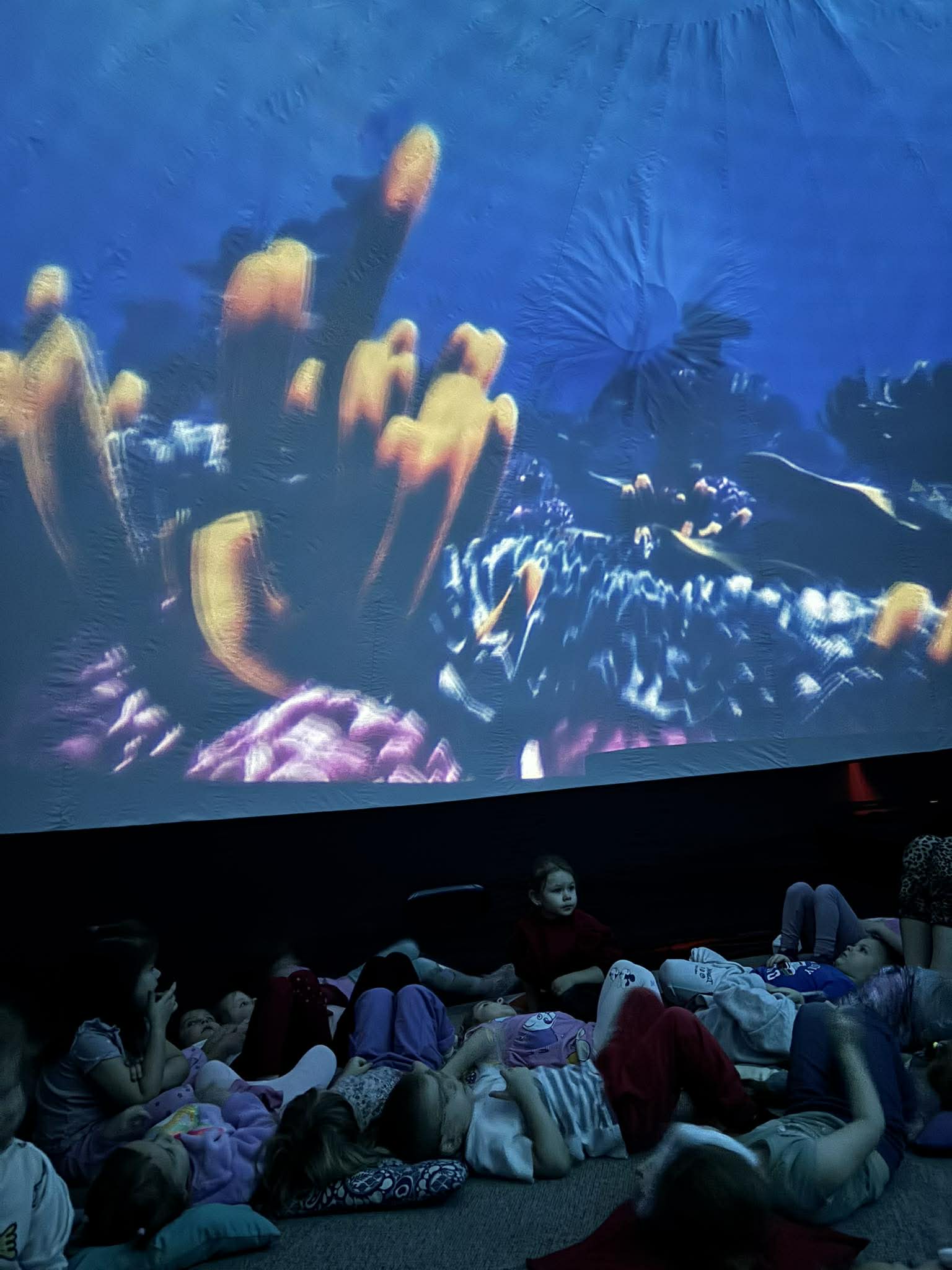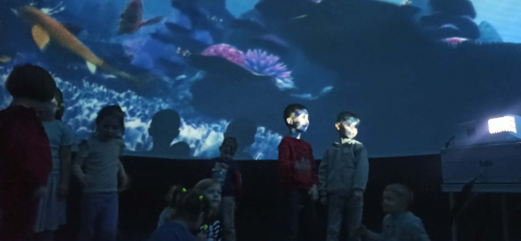 27 lutego do naszego przedszkola przybyło Mobilne Oceanarium, które zabrało naszych przedszkolaków w niezwykłą podwodną podróż. W specjalnej kopule ustawionej w jednej z sal przedszkolnych, wyświetlona została prezentacja 3D. Przedszkolaki mogły w niej odnieść wrażenie, że przebywają na dnie oceanu. A to wszystko za sprawą pływających wokół ryb oraz nurków. Dzieci zobaczyły także wiele fascynujących mieszkańców raf koralowych, takich jak żółwie morskie, płaszczki, ośmiornice, delfiny, rekiny i wiele innych. Ta inspirująca podróż w głąb mórz i oceanów była dla dzieci źródłem wielu pozytywnych emocji i wrażeń.