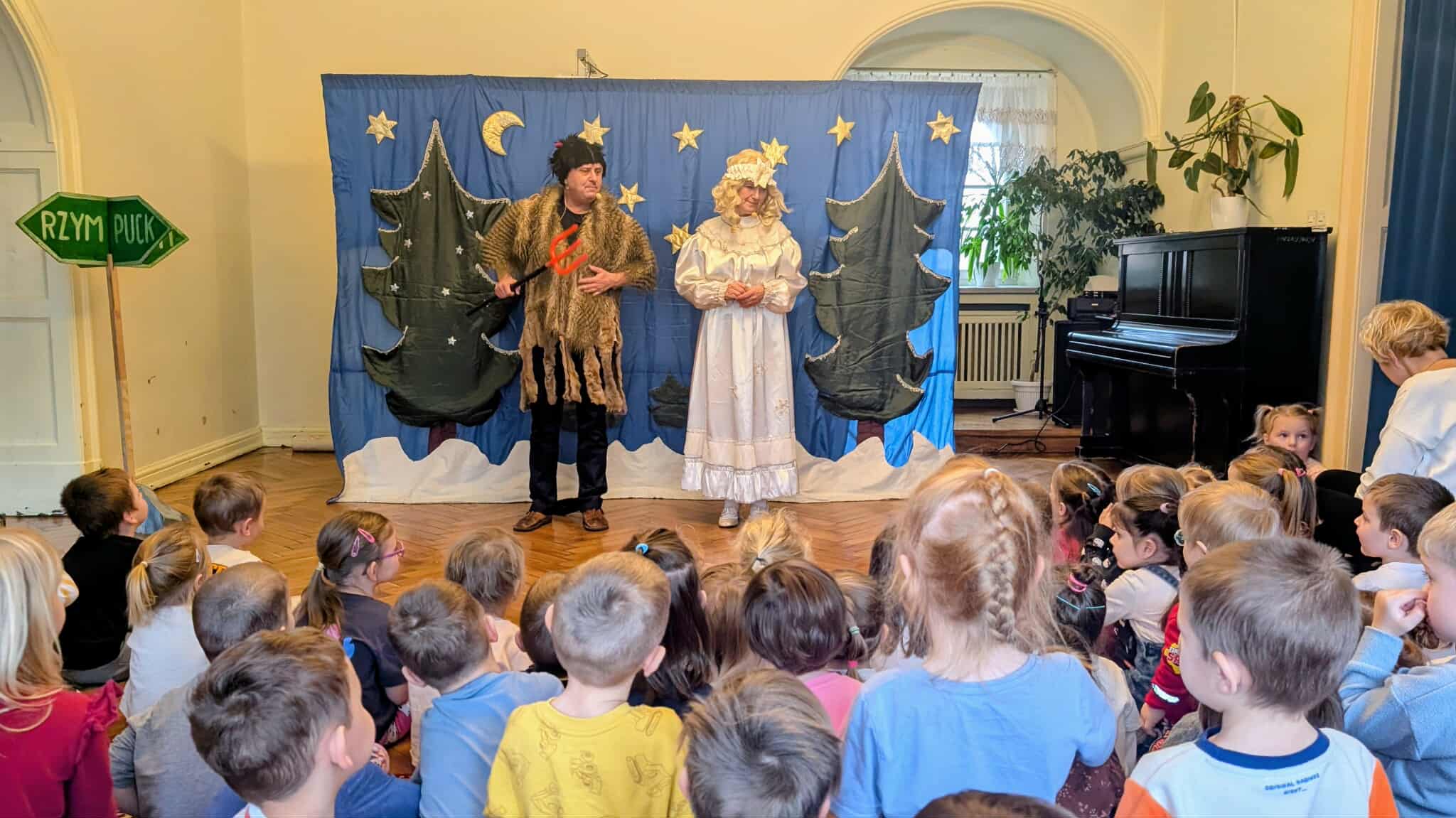 Dnia 2 grudnia nasze przedszkole odwiedził teatr „Bigiel” z wesołym przedstawieniem „W poszukiwaniu Świętego Mikołaja”. Okazało się, że Mikołaj miał mały kłopot… bo pewien bardzo figlarny diabełek ciągle robił mu psikusy. Na szczęście nad wszystkim czuwał Aniołek, który świetnie potrafił uspokoić takie figle i doprowadzić Mikołaja prosto do dzieci. Była to bajka interaktywna, oparta na ścisłym kontakcie z dziećmi, wypełniona humorem i dobrą zabawą.