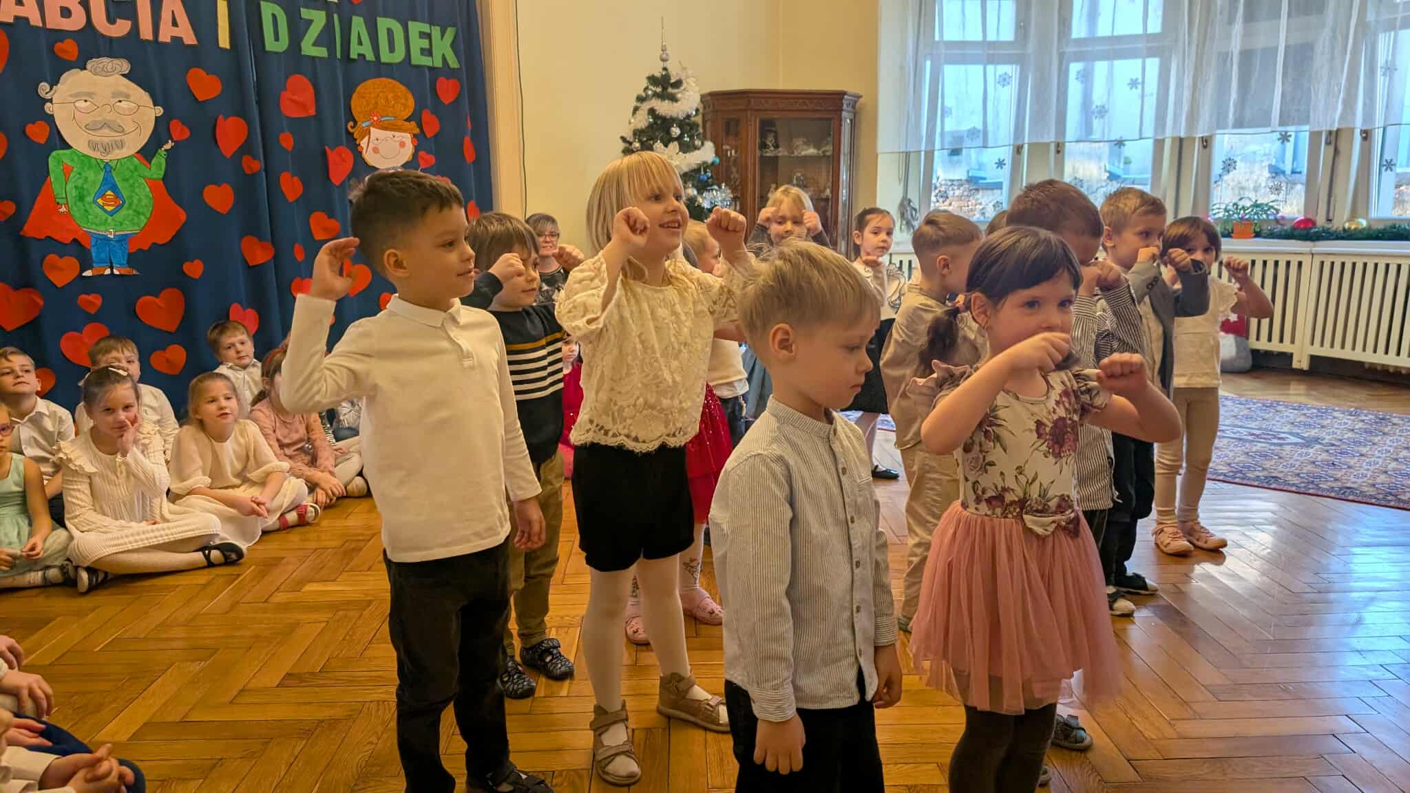 W przepięknej scenografii oraz wyjątkowej atmosferze, wnuczęta wspaniale wystąpiły przed bliskimi, następnie przedszkolaki zaprosiły babcie i dziadków na słodki poczęstunek przygotowany przez rodziców, aby w szczególny sposób okazać swoim bliskim szacunek i po raz kolejny podziękować za miłość, cierpliwość i zrozumienie.