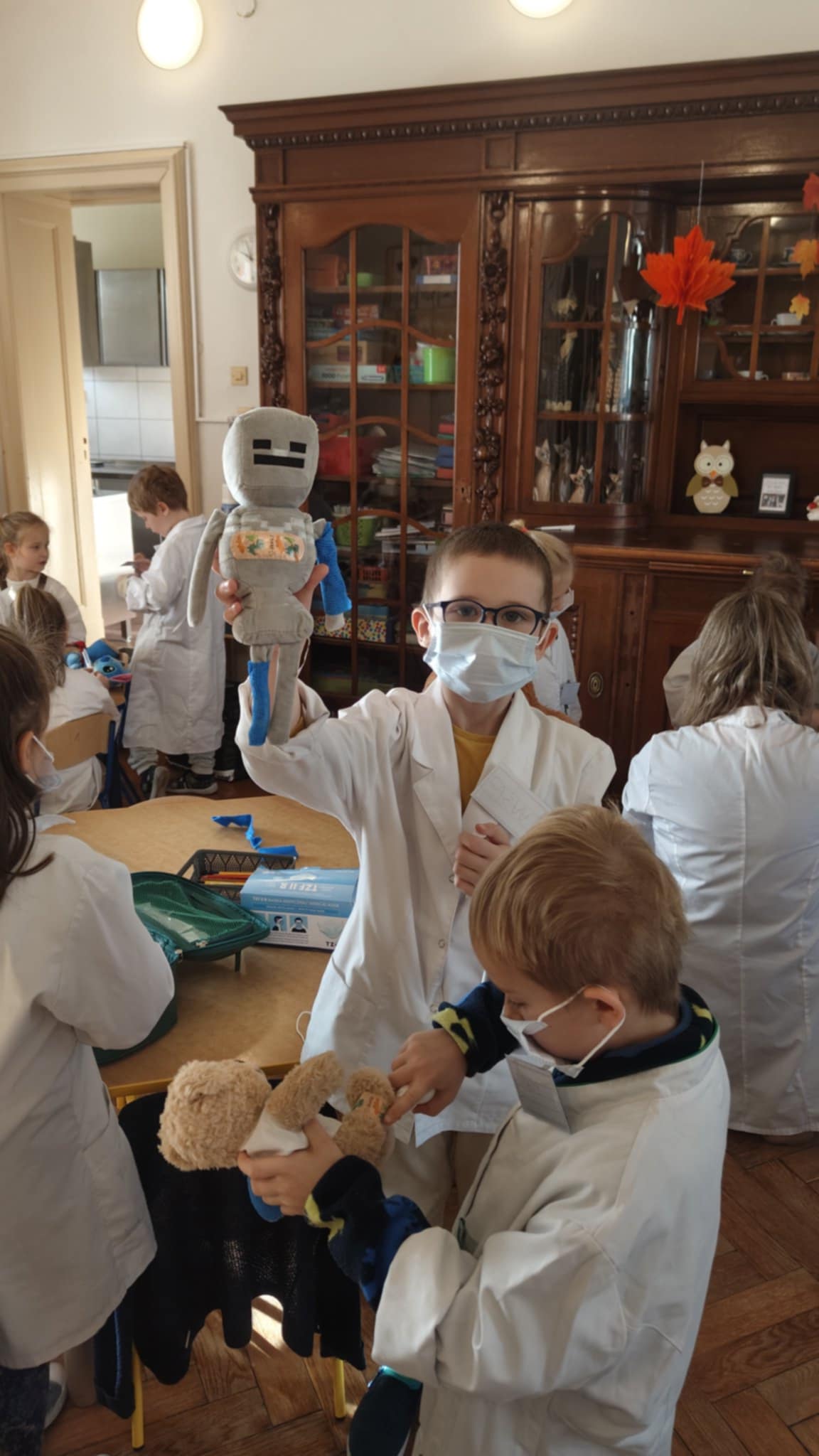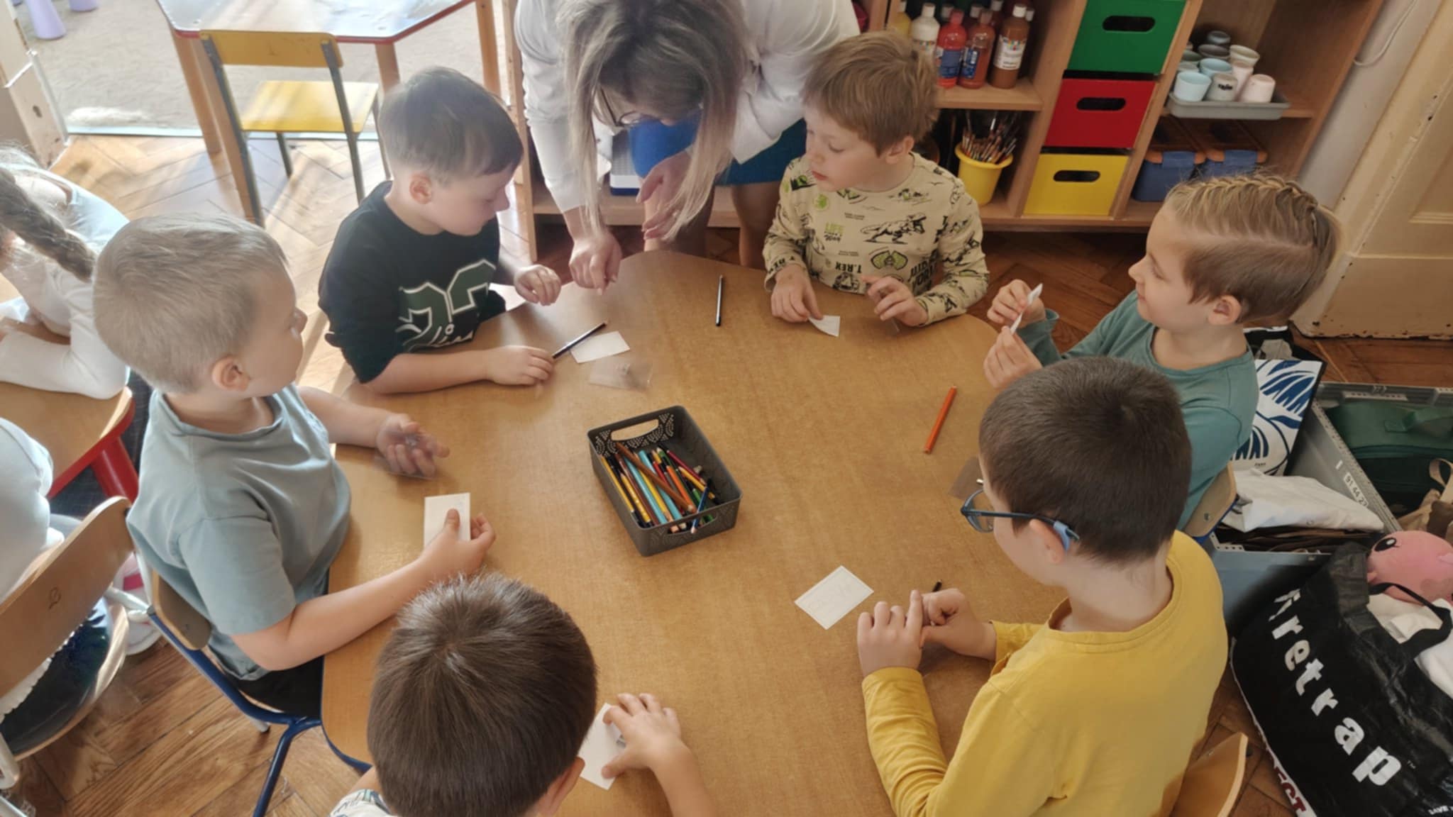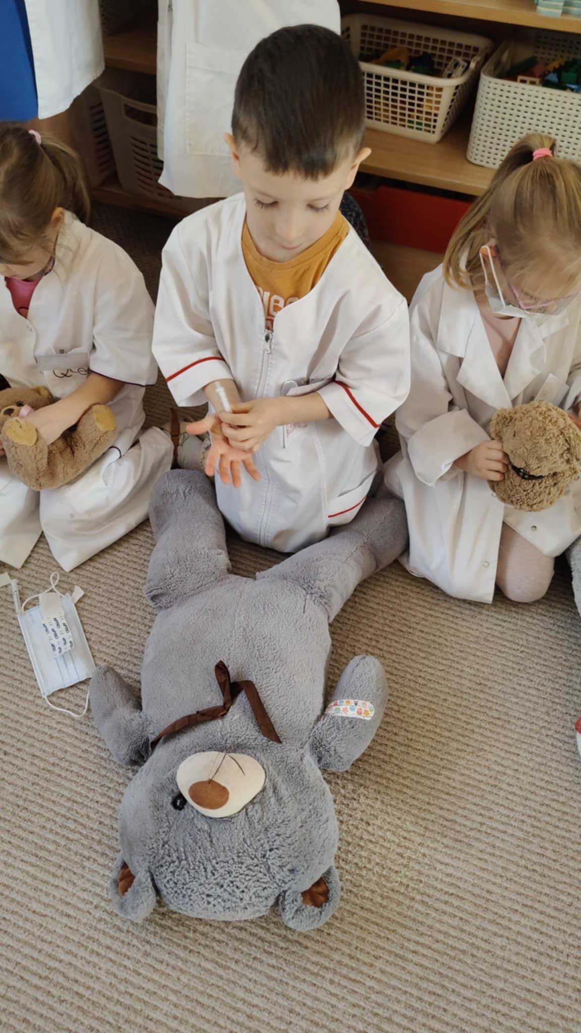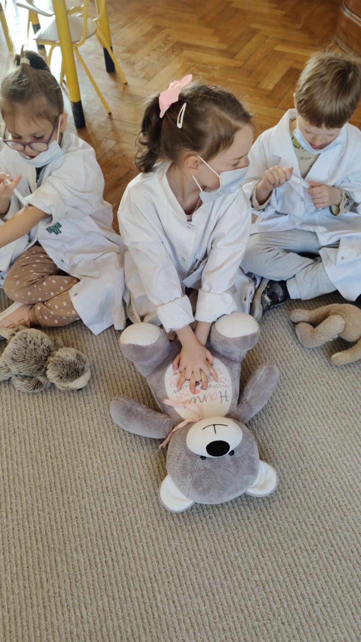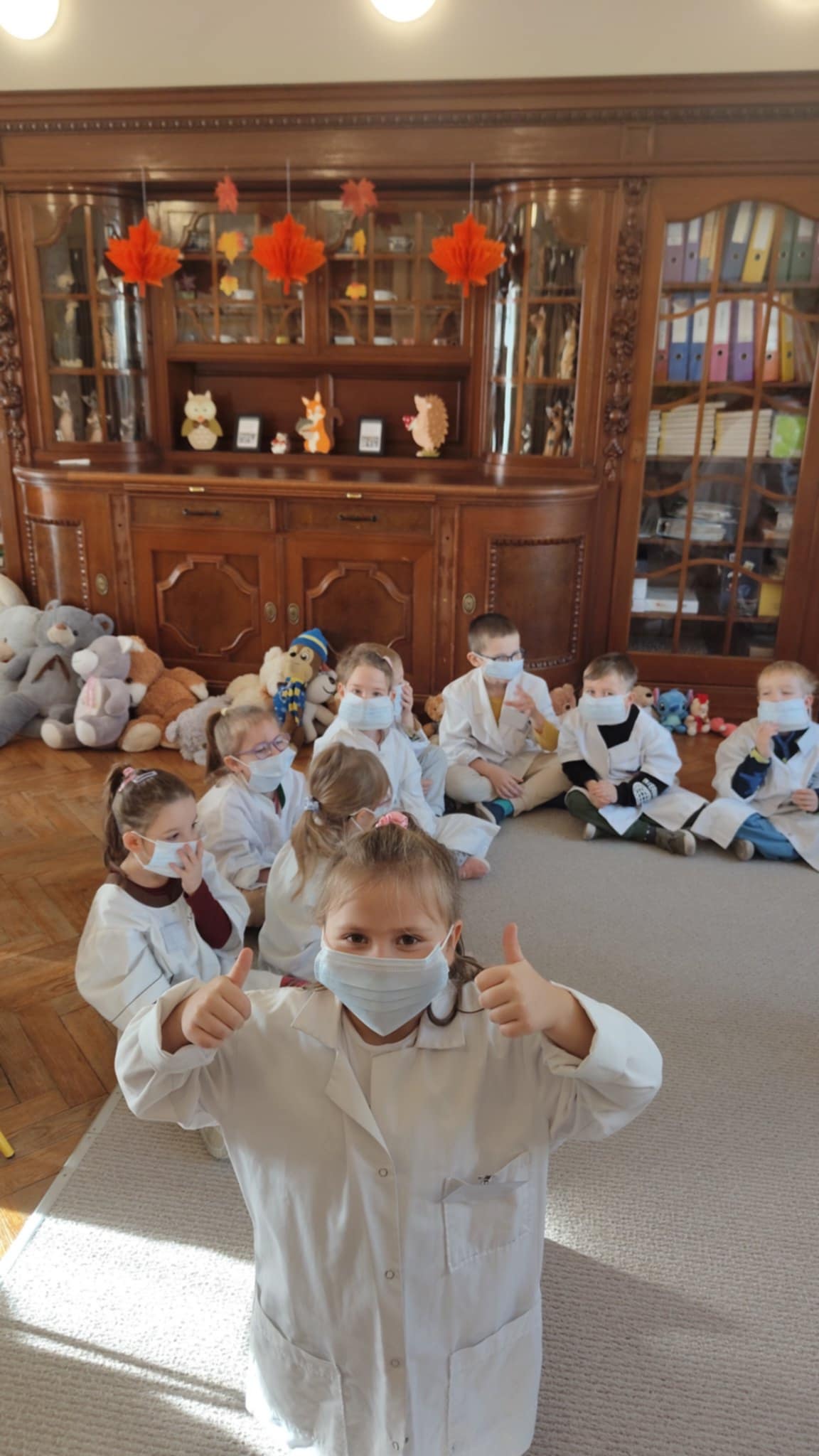 W ramach propagowania zdrowego stylu życia odbyło się w spotkanie Panią Agatą Burtnik farmaceutką, która na początku przeczytała dzieciom bajkę „Przygody jeża farmaceuty. Historie najeżone mądrościami”, autorstwa Rafała Sochackiego przyłączając się tym samym do realizowanego w naszym przedszkolu programu Cała Polska czyta dzieciom.